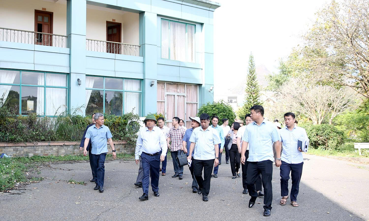 Đồng chí Lê Minh Ngân - Ủy viên Ban Chấp hành Trung ương Đảng, Bí thư Tỉnh ủy cùng Đoàn kiểm tra đến kiểm tra hiện trạng Nhà khách Hương Phong (phường Tân Phong).