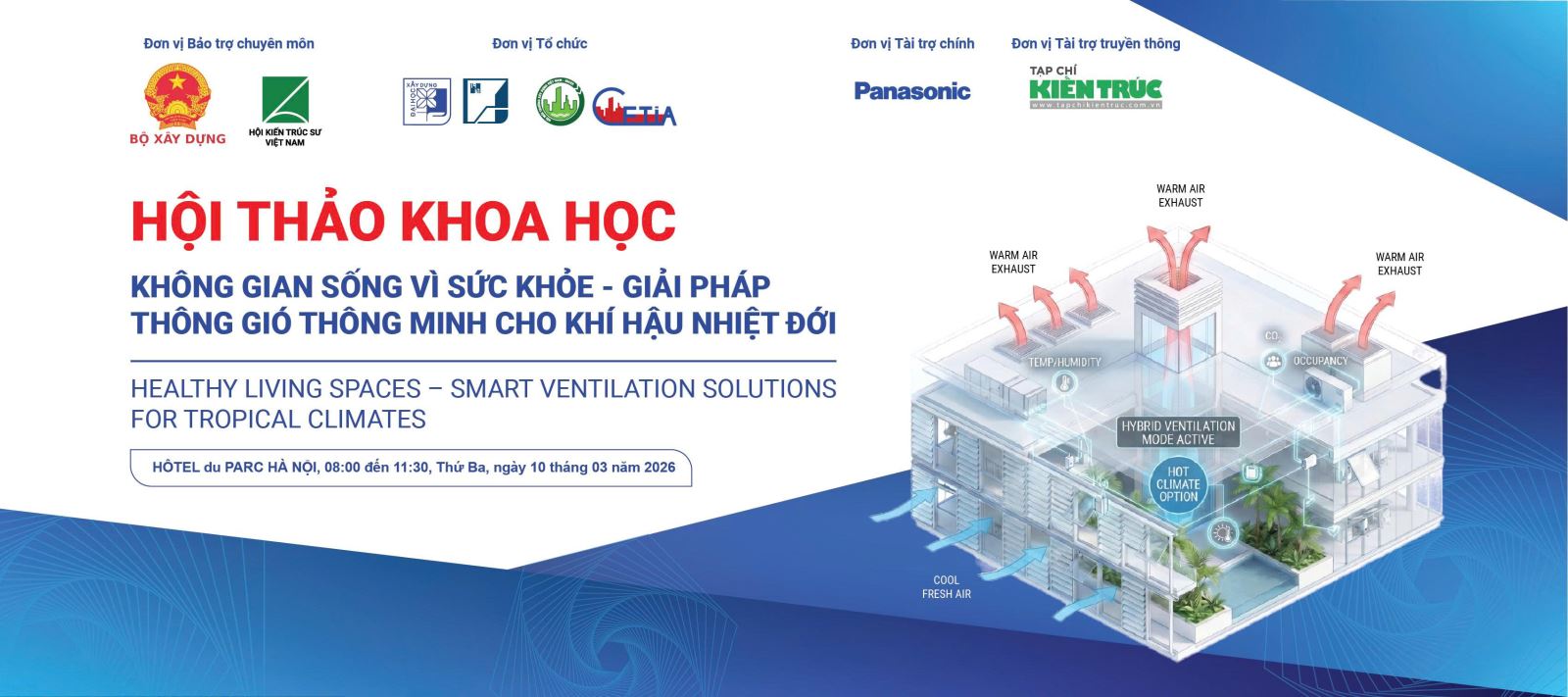 Được sự bảo trợ của Bộ Xây dựng và Hội Kiến trúc sư Việt Nam - Trung tâm Phát triển hành nghề Kiến trúc, ngày 10/3/2026, tại Hà Nội, Trường Đại học Xây dựng Hà Nội sẽ phối hợp với Hội Môi trường Xây dựng Việt Nam - Trung tâm Môi trường đô thị và công nghiệp sẽ tổ chức hội thảo khoa học “Không gian sống vì sức khỏe - Giải pháp thông gió thông minh cho khí hậu nhiệt đới”.