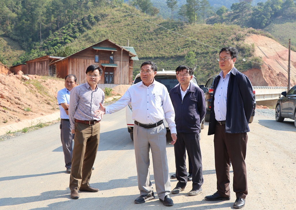 Phó Chủ tịch UBND tỉnh Võ Ngọc Hiệp dẫn đầu đoàn công tác của tỉnh Lâm Đồng kiểm tra thực tế tình hình thực hiện Dự án xây dựng tuyến ĐT722