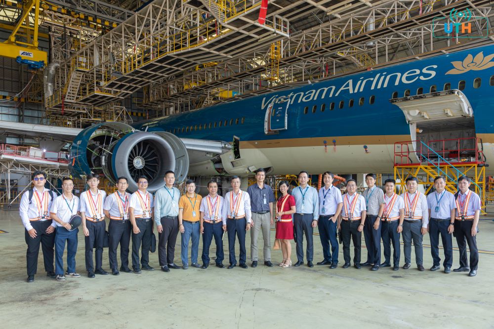 Trong khuôn khổ chương trình, đoàn công tác UTH cũng đã tham quan Trung tâm Đào tạo và bảo dưỡng của VAECO, tìm hiểu trực tiếp quy trình kiểm tra, bảo dưỡng và sửa chữa máy bay tại Sân bay Quốc tế Tân Sơn Nhất. Hoạt động thực tế góp phần giúp nhà trường có cái nhìn toàn diện hơn về công nghệ, quy trình và tiêu chuẩn kỹ thuật trong ngành hàng không hiện đại.