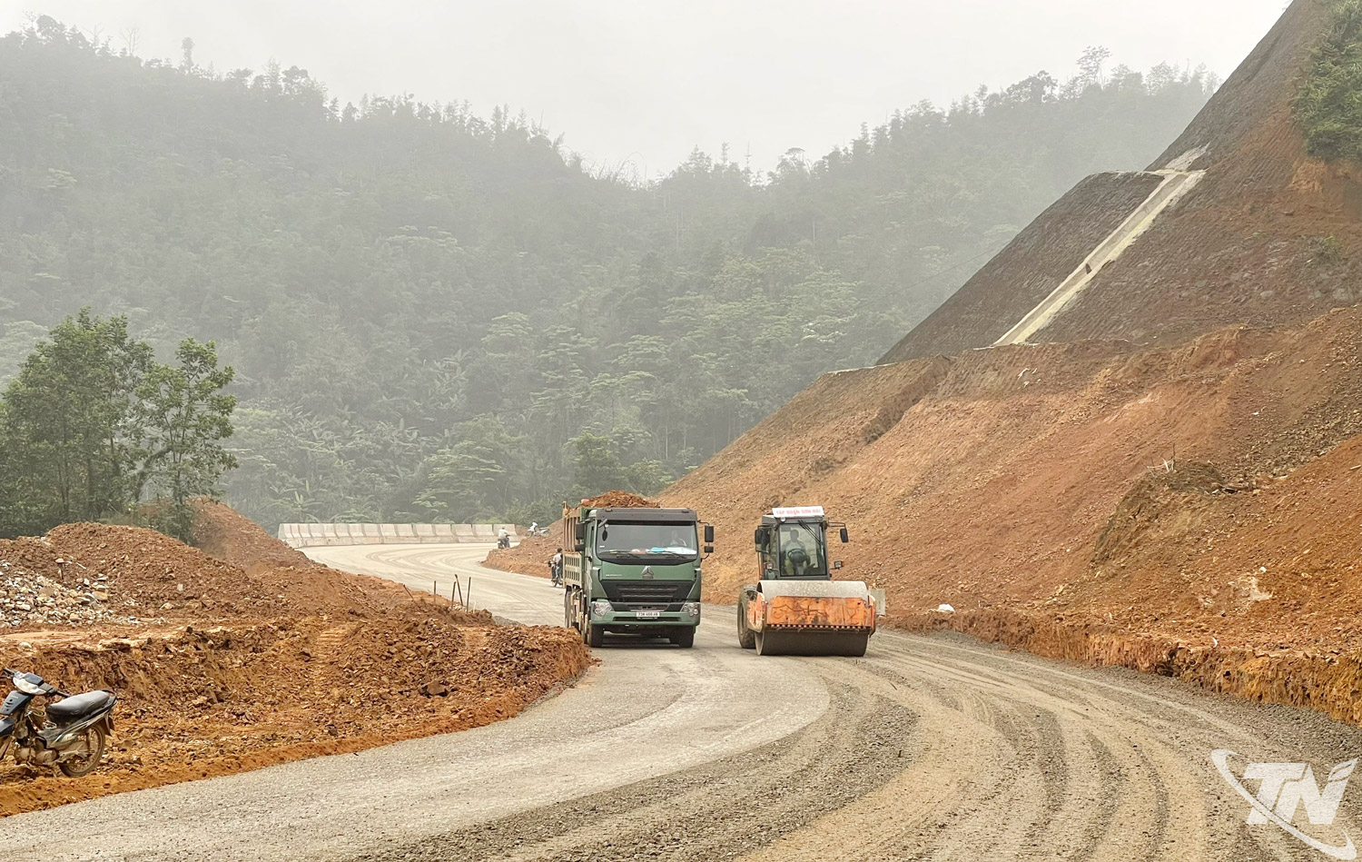 Đơn vị thi công huy động nhân lực, thiết bị, đẩy nhanh tiến độ hoàn thành các hạng mục đường Hồ Chí Minh đoạn qua địa phận tỉnh Thái Nguyên.