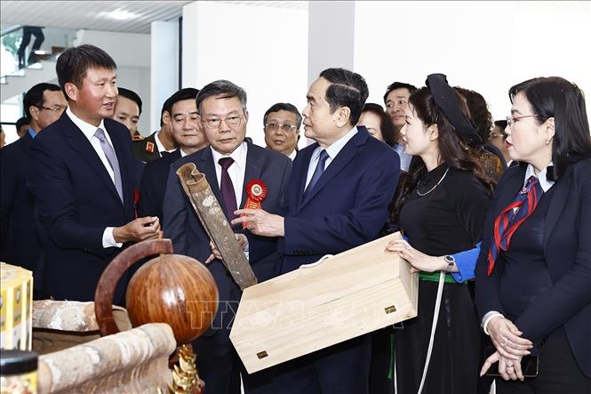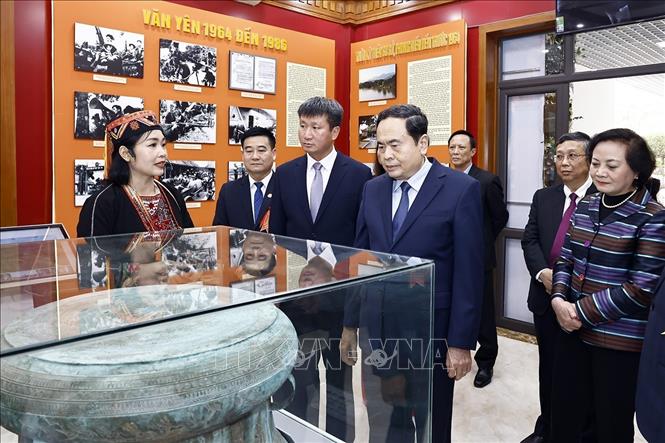Chủ tịch Quốc hội tham quan phòng truyền thống của huyện Văn Yên - Ảnh: TTXVN