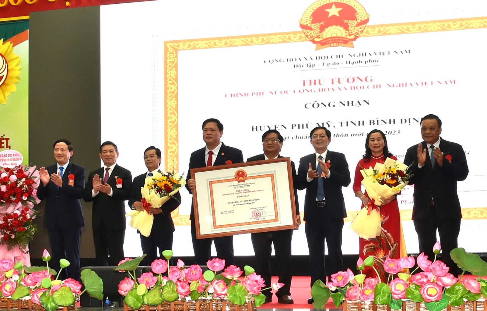 Tại buổi lễ, Phó Thủ tướng Hồ Đức Phớc đã trao Quyết định của Thủ tướng Chính phủ công nhận huyện Phù Mỹ là huyện nông thôn mới năm 2023.