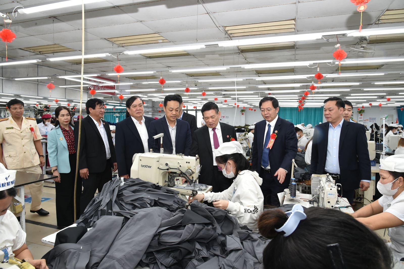 Phó Thủ tướng Hồ Đức Phớc cùng các đồng chí lãnh đạo tỉnh Bình Định thăm Nhà máy may Phú Mỹ. Ảnh VGP/Trần Mạnh