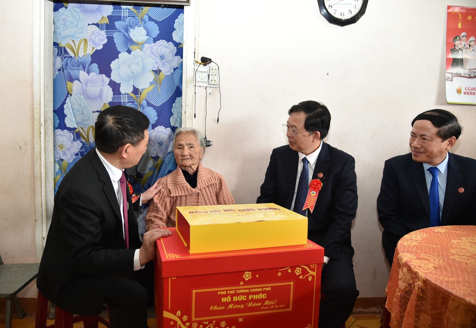 Phó Thủ tướng Hồ Đức Phớc cùng các đồng chí lãnh đạo tỉnh Bình Định đến thăm, chúc tết Mẹ Việt Nam Anh hùng Huỳnh Thị Dậy (thôn Vạn Phước Tây, xã Mỹ Hiệp). Ảnh VGP/Trần Mạnh