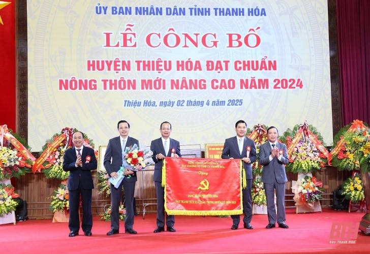 Tại buổi lễ, thừa ủy quyền của Thủ tướng Chính phủ, Bí thư Tỉnh ủy Nguyễn Doãn Anh đã trao Bằng công nhận huyện Thiệu Hóa đạt chuẩn NTM nâng cao năm 2024 của Thủ tướng Chính phủ cho huyện Thiệu Hóa; Chủ tịch UBND tỉnh Đỗ Minh Tuấn trao biển tượng trưng tiền thưởng của tỉnh cho huyện Thiệu Hóa.