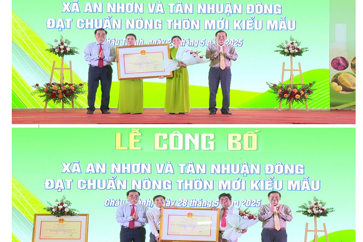 Với sự nỗ lực đó, xã An Nhơn và xã Tân Nhuận Đông được Uỷ ban nhân dân tỉnh công nhận xã đạt chuẩn nông thôn mới kiểu mẫu năm 2024. Dịp này, nhiều tập thể và cá nhân nhận Bằng khen của Chủ tịch Uỷ ban nhân dân tỉnh vì có thành tích xuất sắc trong xây dựng xã nông thôn mới kiểu mẫu; đồng thời, Uỷ ban nhân dân huyện Châu Thành cũng khen thưởng cho nhiều tập thể và cá nhân.