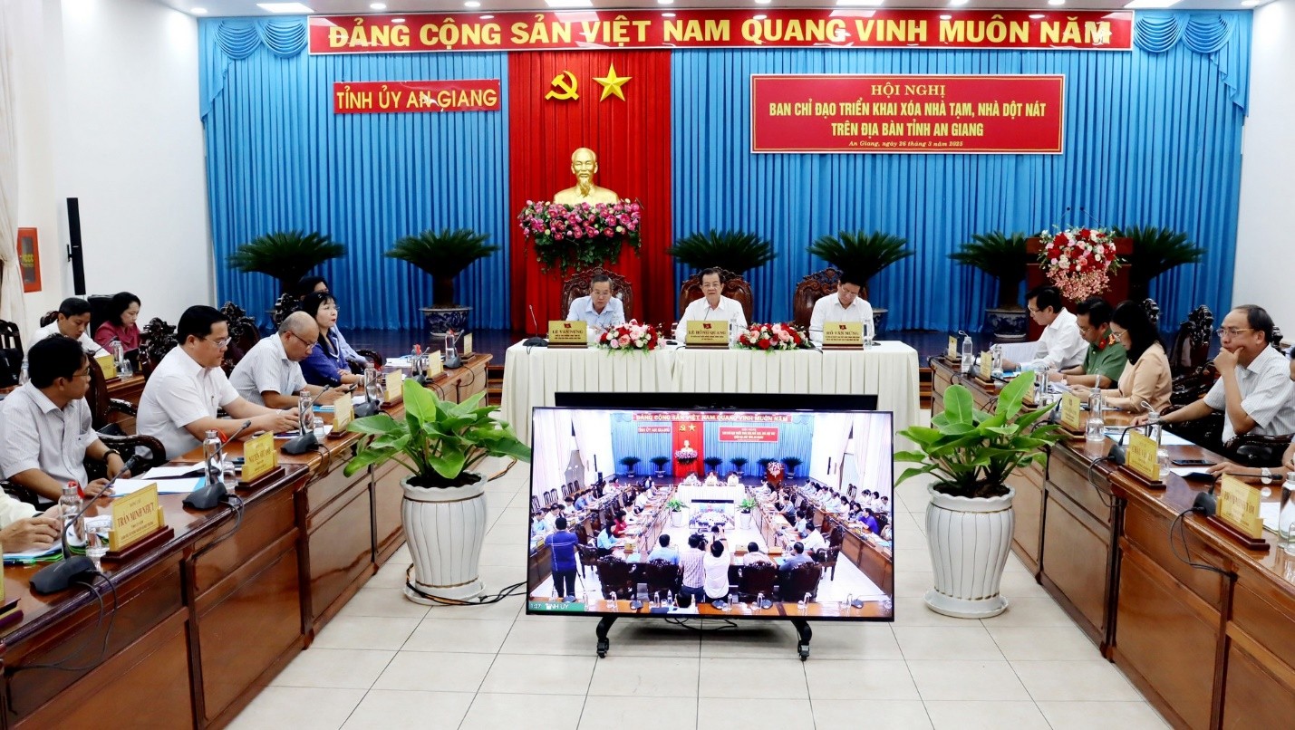 Bí thư Tỉnh ủy An Giang Lê Hồng Quang, Trưởng Ban Chỉ đạo triển khai xóa nhà tạm, nhà dột nát trên địa bàn tỉnh An Giang vừa chủ trì Hội nghị trực tiếp và trực tuyến để đánh giá tiến độ triển khai thực hiện xóa nhà tạm, nhà dột nát trên địa bàn tỉnh trong thời gian qua và bàn giải pháp thực hiện trong thời gian tới.