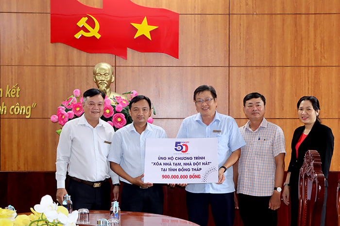 Ủy ban Mặt trận Tổ quốc Việt Nam tỉnh Đồng Tháp vừa tổ chức Lễ tiếp nhận số tiền 900 triệu đồng, do Tổng Công ty điện lực miền Nam hỗ trợ nhà “Đại đoàn kết” cho hộ nghèo thực hiện Chương trình xóa nhà tạm, nhà dột nát trên địa bàn.