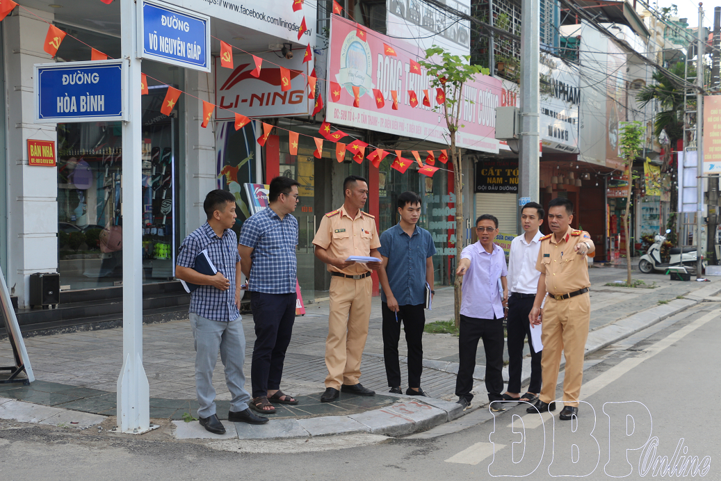 Các cơ quan chức năng kiểm tra hiện trường, thống nhất phương án xử lý, tổ chức giao thông trên một số tuyến đường đô thị phường Điện Biên Phủ.