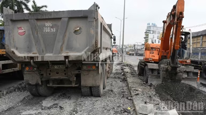 Đơn vị thi công bóc lớp nhựa cũ, sau đó gia cố từng lớp kết cấu trước khi đổ bê tông.