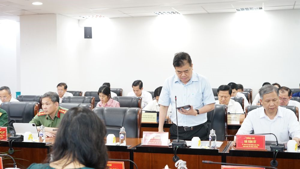 Đại diện các sở, ban ngành, địa phương báo cáo về tiến độ thực hiện dự án đường ven sông Sài Gòn đoạn qua địa bàn TP.Thuận An