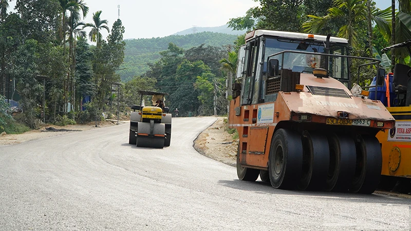 Đoạn qua huyện Bắc Trà My phấn đấu thi công hoàn thành thảm bê-tông nhựa 3,5km trong tháng 4/2025, cơ bản hoàn thành thảm bê-tông nhựa trước 30/6/2025 đoạn 5,1/5,7km đã có mặt bằng.