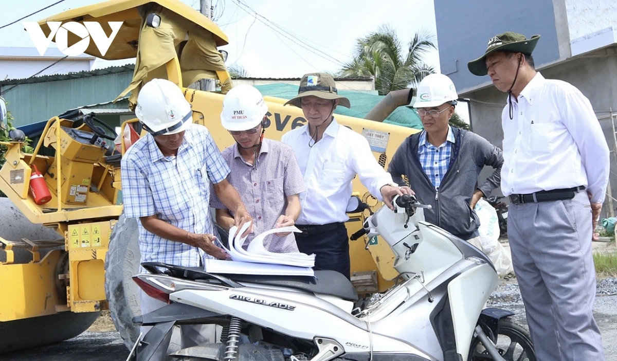 Liên quan đến tình trạng ngập nước mưa tại nhiều vị trí ven đường dẫn lên cầu Rạch Miễu 2 (phía tỉnh Đồng Tháp) mà VOV đã phản ánh, Sở Xây dựng tỉnh Đồng Tháp cùng Ban Quản lý dự án Mỹ Thuận, đơn vị tư vấn giám sát và các nhà thầu thi công gói thầu XL01, vừa tiến hành khảo sát thực địa tại các điểm xuất hiện đọng nước ở khu vực nút giao tỉnh lộ 870, đường huyện 34 và đoạn tuyến mới dẫn lên cầu Rạch Miễu 2.