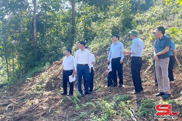 Lãnh đạo UBND tỉnh Sơn La kiểm tra Điểm TĐC bản Ui, xã Vân Hồ, nơi có nhân dân di chuyển tái định cư thực hiện Dự án cao tốc Hòa Bình - Mộc Châu, đoạn tuyến thuộc địa bàn tỉnh Sơn La. Ảnh: Huy Thành