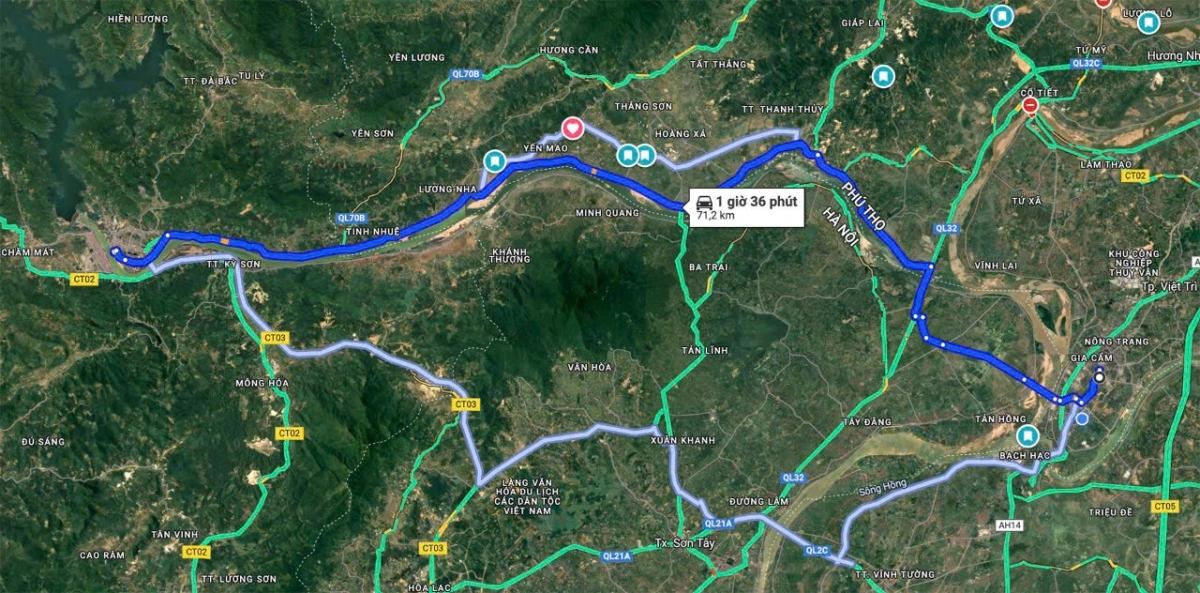 Phương án 2: Xây dựng tuyến cao tốc từ phường Việt Trì đến nút IC02 đường cao tốc CT03, thuộc địa phận xã Đà Bắc, tổng chiều dài tuyến khoảng 52km.