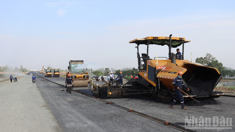 Trong đó, gói thầu 44 tiến độ sản lượng đạt 67,40% (vượt khoảng 1,02%); gói thầu 42 tiến độ sản lượng đạt 66,84% (vượt khoảng 0,08%). Bên cạnh đó, các nhà thầu đang khẩn trương trải thảm nhựa, phấn đấu đến ngày 19/12/2025 sẽ hoàn thành khoảng 25km mặt đường bê-tông nhựa và đoạn tuyến 32,014km sẽ phấn đấu hoàn thiện đến cấp phối đá dăm mặt đường để thông xe trên tuyến.