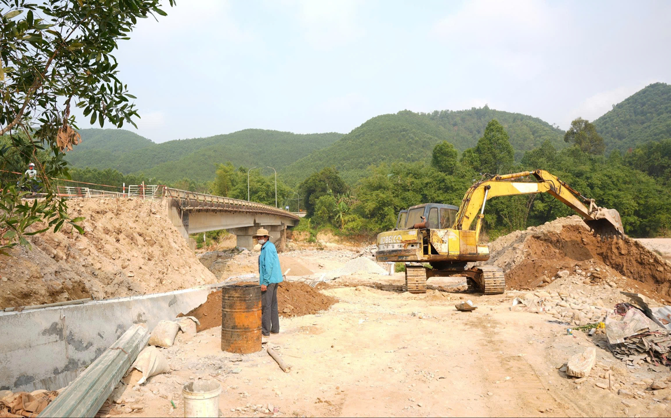 Kiểm tra công tác khắc phục, sửa chữa cầu Lê Nô (xã Khe Tre), ông Nguyễn Khắc Toàn ghi nhận tinh thần tích cực của các đơn vị thi công với việc huy động nhân lực, máy móc triển khai tại hiện trường.