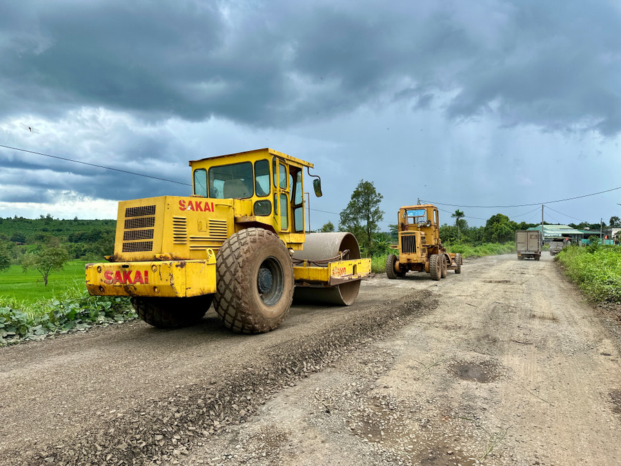 Tranh thủ ngày tạnh ráo, nhà thầu đẩy nhanh tiến độ thi công tỉnh lộ 666. Ảnh: Hà Duy