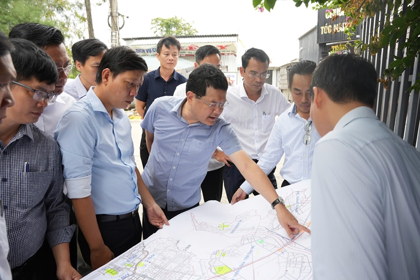 Phó Chủ tịch UBND thành phố Huế Hoàng Hải Minh khảo sát sơ đồ giải phóng mặt bằng của dự án