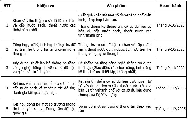 Theo đó, thực hiện nhiệm vụ xây dựng Cơ sở dữ liệu cấp nước sạch và thoát nước đô thị năm 2025 - 2026 phù hợp với các quy định hiện hành, Cục Kết cấu hạ tầng xây dựng trân trọng kính mời doanh nghiệp đồng hành với Bộ Xây dựng (quy định tại mục 08 Phụ lục III kèm theo Nghị quyết số 214/NQ-CP ngày 23/7/2025 của Chính phủ) chủ trì, phối hợp với một số đơn vị cung ứng dịch vụ công nghệ thông tin (có kinh nghiệm về ngành nước và môi trường) tham gia đồng hành xây dựng, thử nghiệm sản phẩm/dịch vụ công nghệ thông tin nêu trên, cụ thể như sau:
