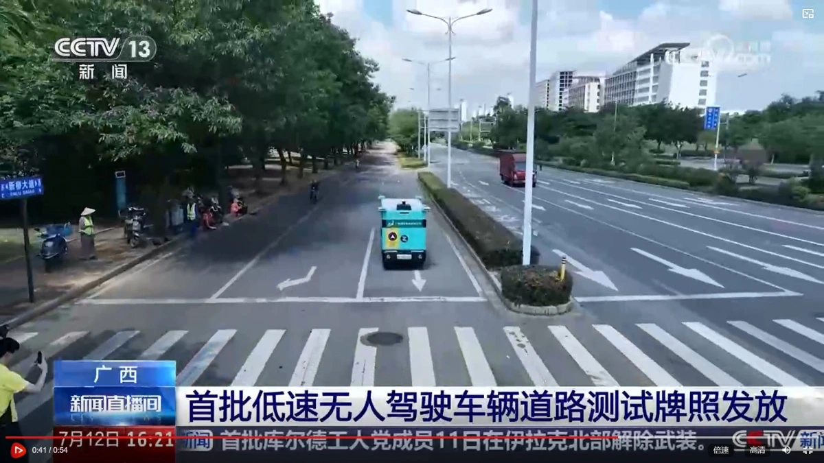Chính quyền khu tự trị dân tộc Choang Quảng Tây vừa chính thức cấp giấy phép thử nghiệm cho các phương tiện không người lái tốc độ thấp hoạt động trên đường phố. Đây cũng là lần đầu tiên phương tiện này được cấp giấy phép hoạt động trên đường phố.