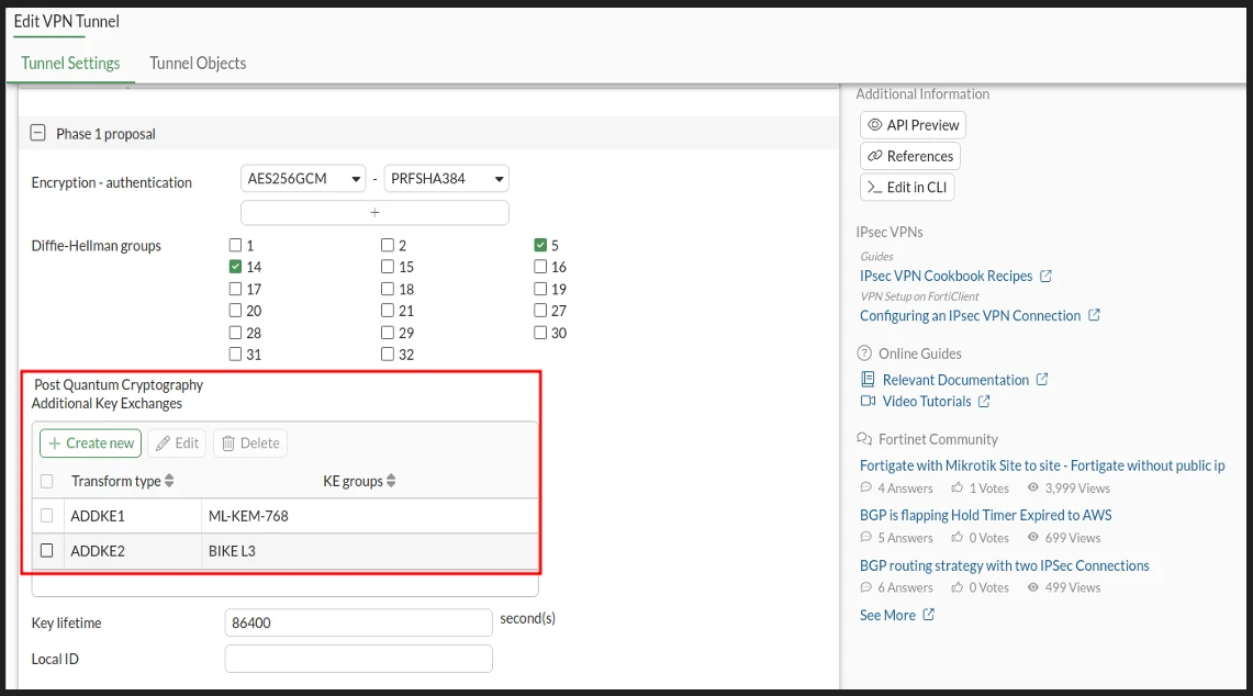 Những tính năng mới trên FortiOS hỗ trợ các tổ chức có dữ liệu nhạy cảm triển khai thuật toán mã hóa và phương pháp phân phối khóa có khả năng chống lại các cuộc tấn công lượng tử, kết hợp nhiều thuật toán để tăng cường bảo mật và chuyển đổi dễ dàng sang môi trường bảo mật hậu lượng tử.