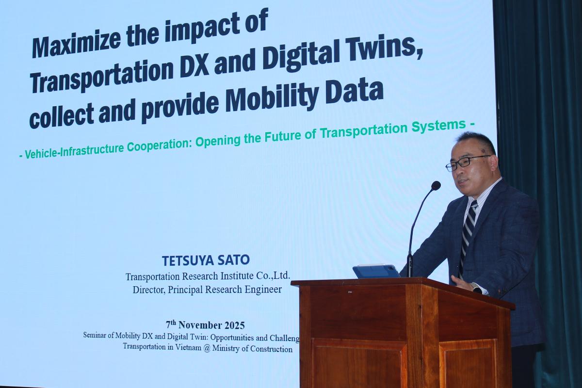 Ông Tetsuya Sato - Công ty Viện nghiên cứu giao thông Nhật Bản thuyết trình về Tối ưu hiệu quả ứng dụng Mobility DX and Digital Twin