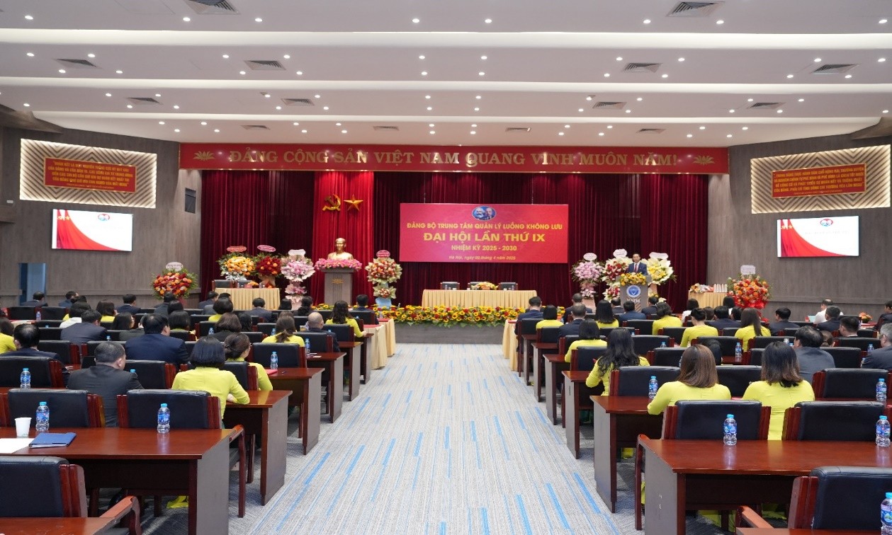Đại hội điểm Đảng bộ Trung tâm Quản lý luồng không lưu lần thứ IX, nhiệm kỳ 2025-2030, diễn ra trong ngày 09/4/2025 tại hội trường tầng 8 - Tòa nhà B Tổng công ty Quản lý bay Việt Nam. Đại hội được tiến hành với phương châm "Đoàn kết - Đổi mới - Sáng tạo - Chất lượng".
