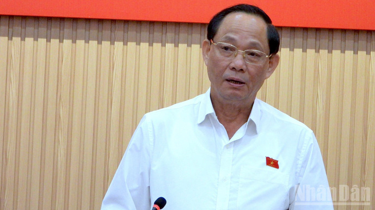 Thành viên Đoàn công tác của Hội đồng Bầu cử quốc gia góp ý kiến tại buổi làm việc với Ủy ban Bầu cử tỉnh Cà Mau.