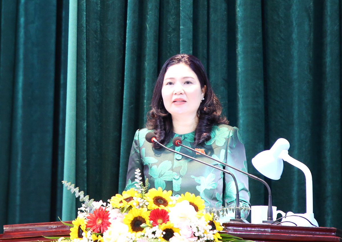 Phó Trưởng Đoàn ĐBQH tỉnh Bắc Ninh khóa XV Trần Thị Vân trình bày chương trình hành động trước cử tri