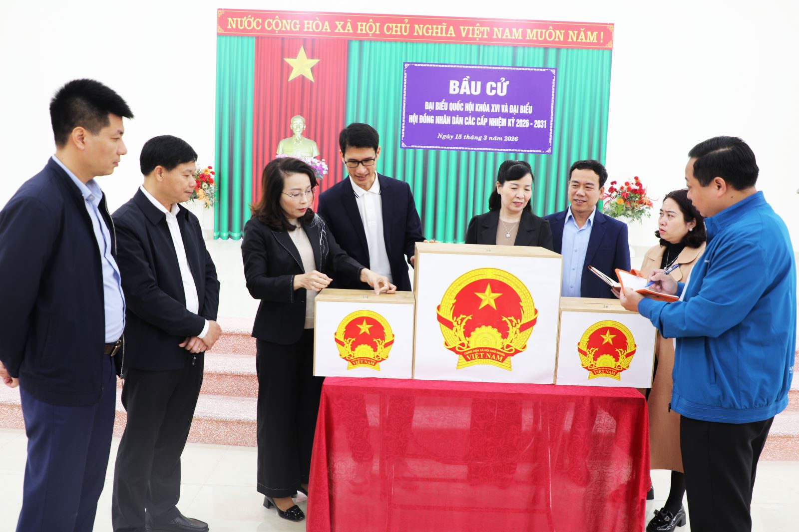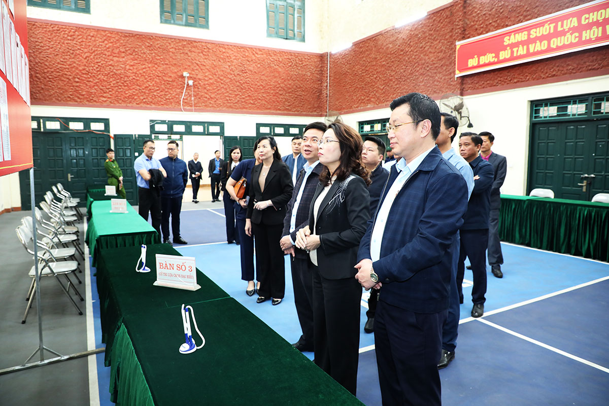 Cùng đi có đồng chí Nguyễn Thị Hà, Ủy viên Ban Thường vụ Tỉnh ủy, Chủ tịch Ủy ban MTTQ tỉnh, Phó Trưởng Ban Chỉ đạo bầu cử tỉnh, Phó Chủ tịch Ủy ban bầu cử tỉnh; lãnh đạo Văn phòng Tỉnh ủy, Sở Nội vụ.