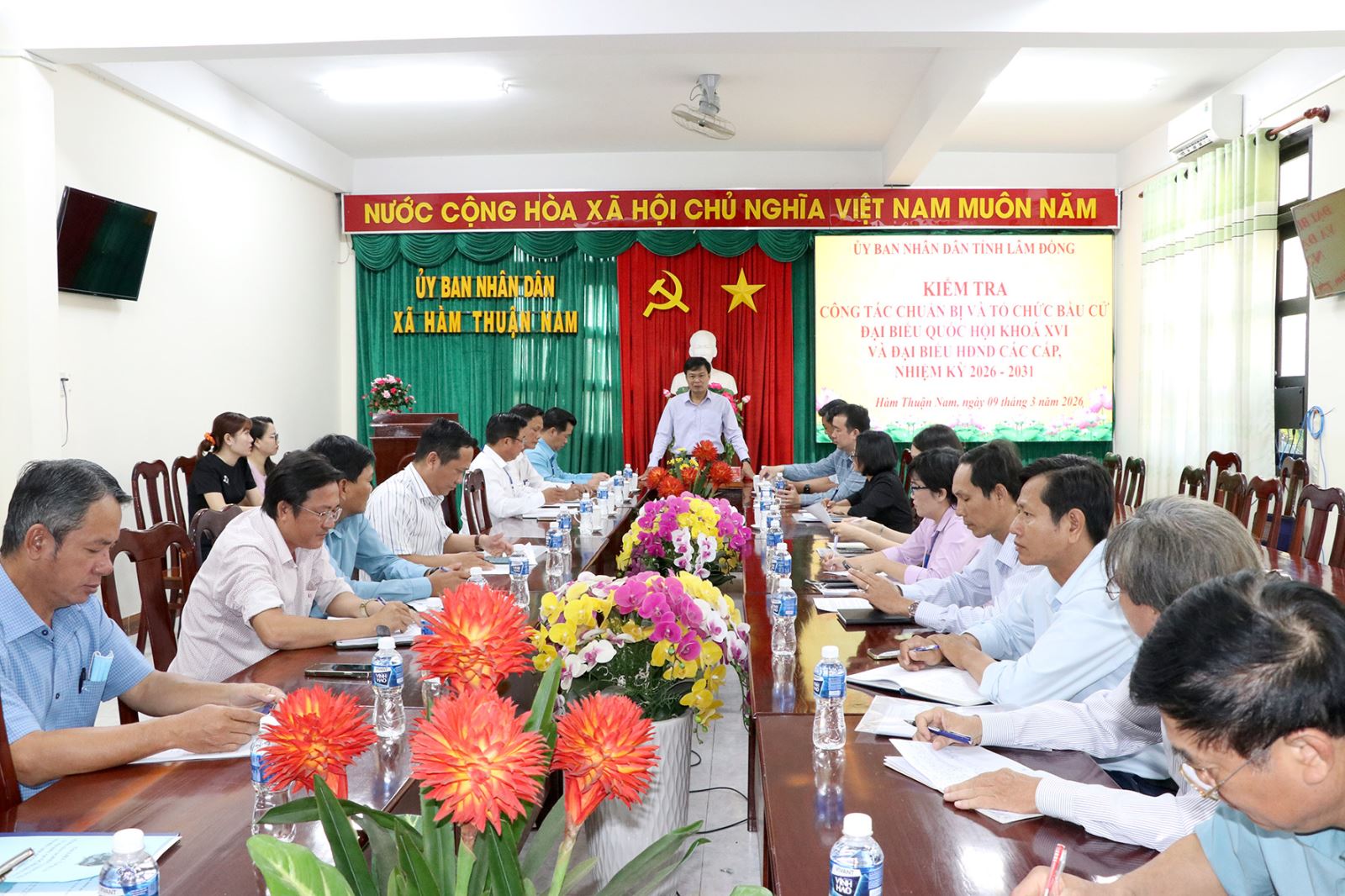 Phó Chủ tịch UBND tỉnh Lâm Đồng Đinh Văn Tuấn vừa kiểm tra công tác chuẩn bị cho cuộc bầu cử đại biểu Quốc hội khóa XVI và đại biểu HĐND các cấp, nhiệm kỳ 2026 - 2031 tại các xã Hàm Thuận Nam, Hàm Kiệm và Hồng Sơn. Cùng đi có đại diện lãnh đạo các sở, ngành và địa phương liên quan.