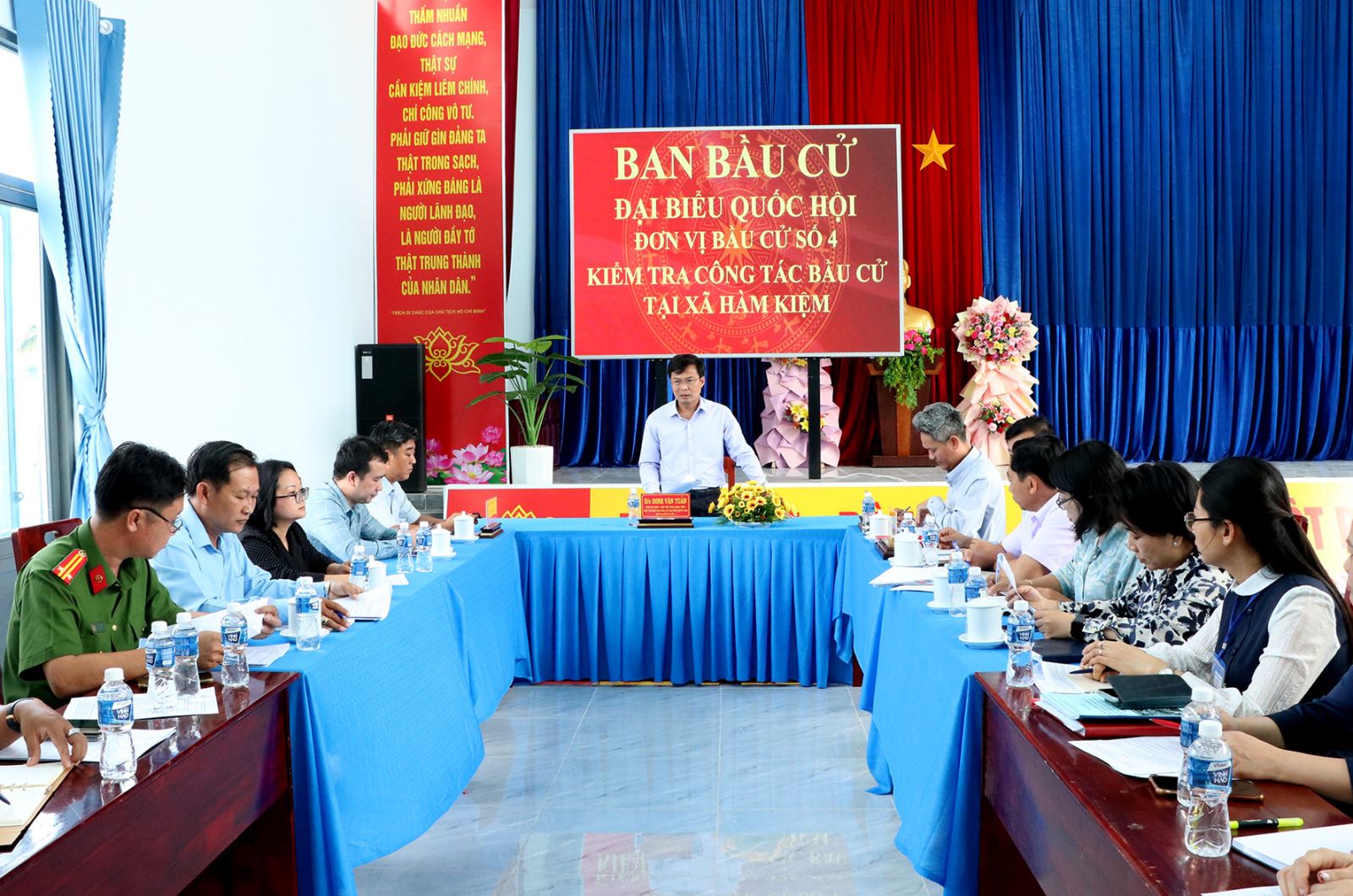 Phó Chủ tịch UBND tỉnh Đinh Văn Tuấn kiểm tra công tác chuẩn bị cho cuộc bầu cử tại xã Hàm Kiệm