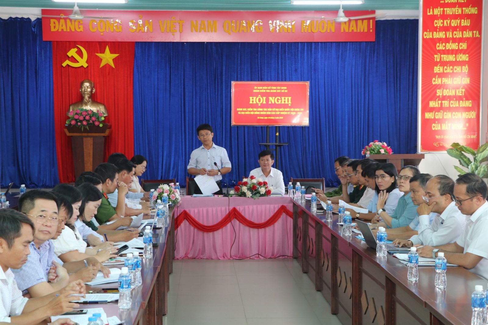 Phó Chủ tịch Ủy ban MTTQVN tỉnh, Chủ tịch Liên đoàn Lao động tỉnh Trần Lê Duy - Phó trưởng Đoàn kiểm tra số 02 của Ủy ban bầu cử tỉnh Tây Ninh kết luận buổi làm việc