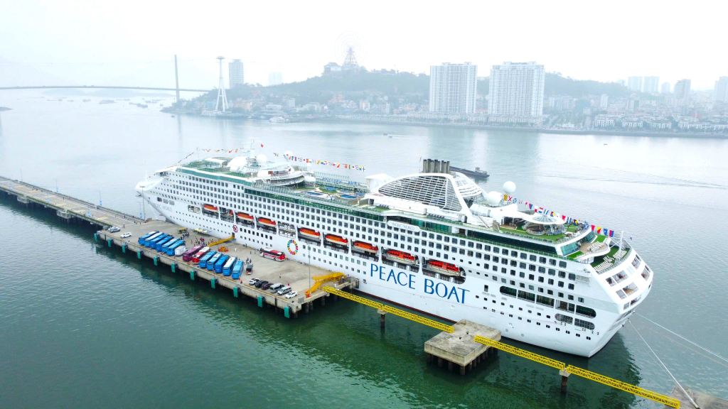 Tàu biển Pacific World đưa khoảng 1.700 du khách (chủ yếu là khách Nhật Bản) đến Quảng Ninh dịp 30/4/2025.