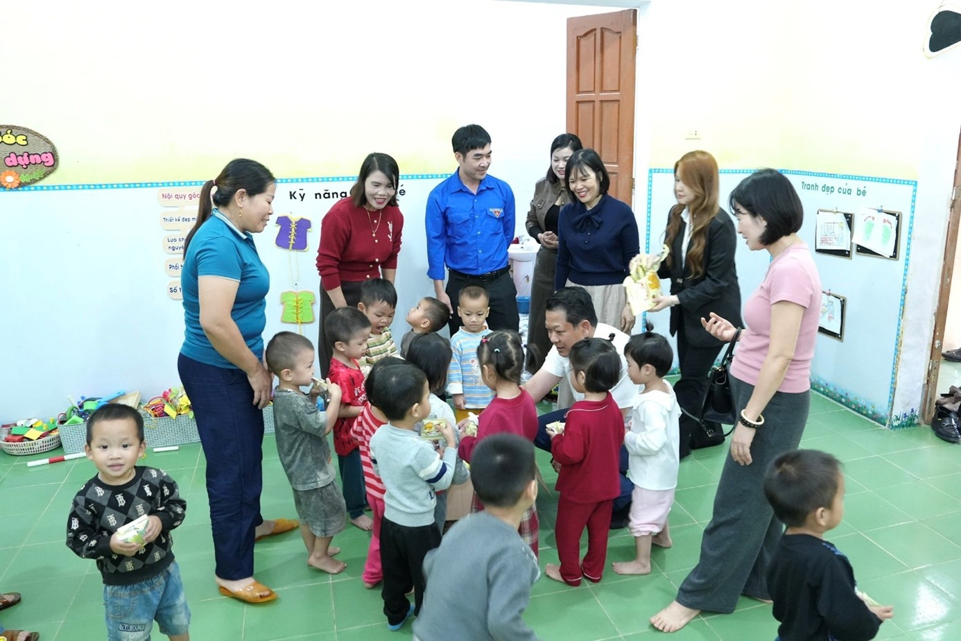 Đoàn Thanh niên Tổng công ty phối hợp cùng Công đoàn Tổng công ty đã đến thăm và trao tặng sách vở, đồ dùng học tập, máy chiếu phục vụ giảng dạy cho Trường Mầm non và Tiểu học Bình Sơn