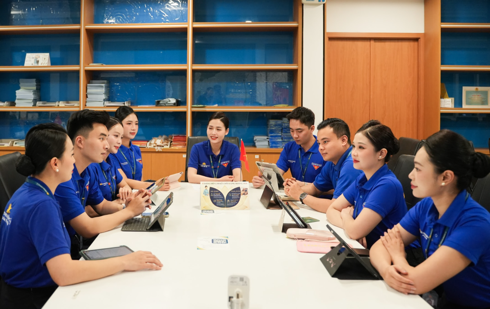 Khoác lên màu áo Đoàn Thanh niên, đội ngũ tiếp viên không chỉ thực hiện nhiệm vụ phục vụ thường nhật mà còn mang đến một hình ảnh mới, trẻ trung, nhiệt huyết và đầy tinh thần cống hiến. Trên hành trình đặc biệt này, mỗi nụ cười, mỗi cử chỉ phục vụ đều trở thành cách tuổi trẻ Vietnam Airlines lan tỏa giá trị khác biệt, vượt lên trên khuôn khổ của một chuyến bay thông thường.