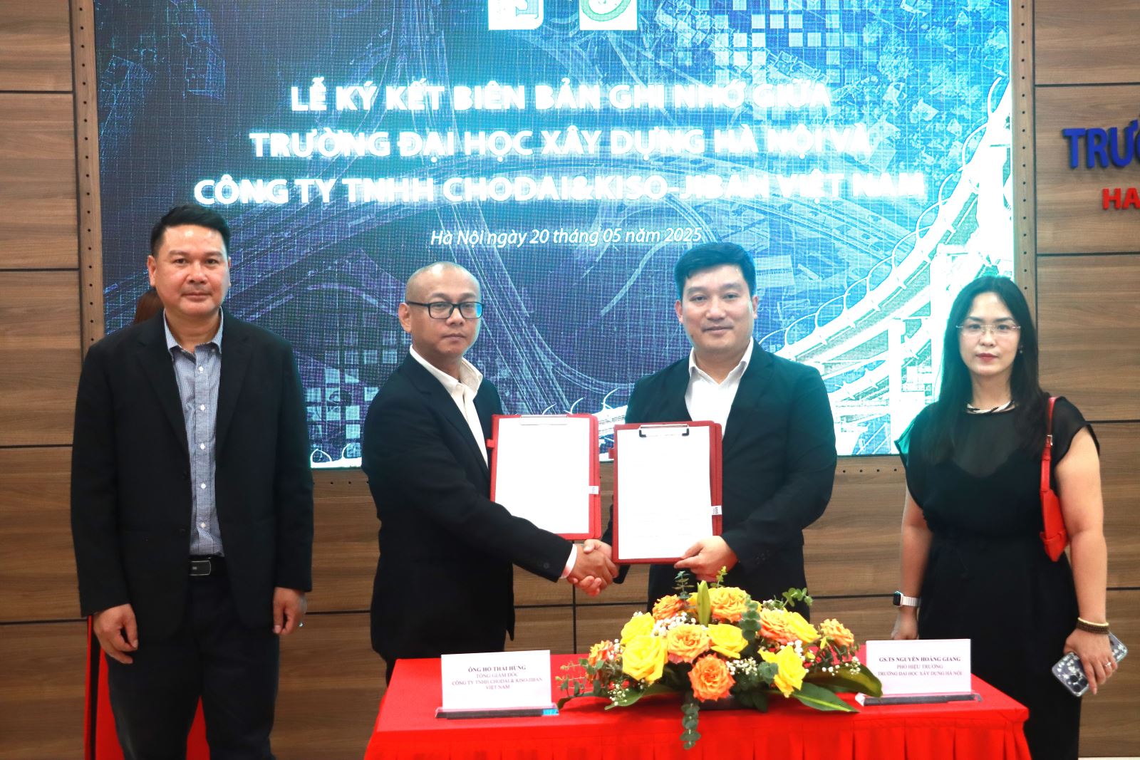 Tại buổi lễ, Giáo sư, Tiến sĩ Nguyễn Hoàng Giang - Phó Hiệu trưởng Trường Đại học Xây dựng Hà Nội và Tổng Giám đốc Chodai & Kiso-Jiban Việt Nam Hồ Thái Hùng đã ký kết và trao biên bản ghi nhớ và Giấy chứng nhận Công ty Chodai & Kiso-Jiban Việt Nam là nhà tài trợ của Quỹ học bổng và Phong trào sinh viên Khoa Cầu đường. Thỏa thuận hợp tác được ký kết tạo điều kiện cho hai bên trong việc tiếp cận, chia sẻ các thông tin, các công nghệ tiên tiến, môi trường làm việc chuyên nghiệp, cung cấp nguồn lực chất lượng cao, ổn định cho doanh nghiệp. Đây là bước đi quan trọng nhằm thúc đẩy hợp tác trong đào tạo, nghiên cứu khoa học và ứng dụng công nghệ trong lĩnh vực hạ tầng giao thông đường sắt.