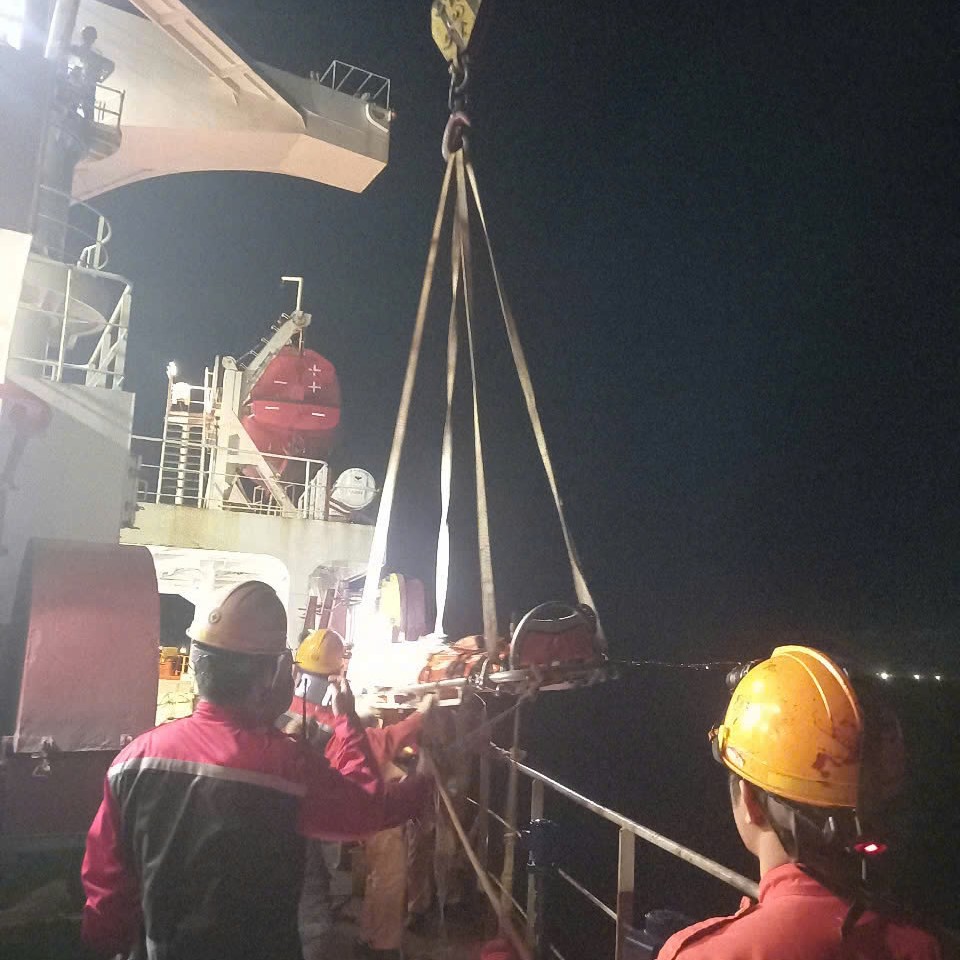 Hồi 23 giờ 00 phút ngày 24/5/2025, lực lượng cứu nạn hàng hải đã tiếp cận được tàu SM HEDLAND khẩn trương đưa bệnh nhân về bờ.