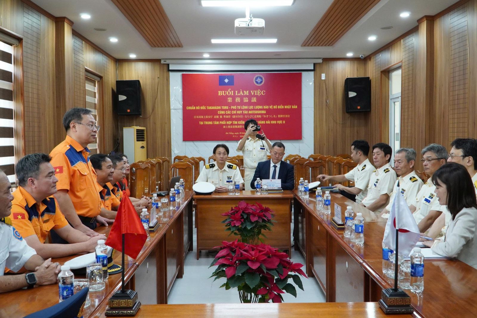 Tại buổi làm việc, ông Vũ Việt Hùng, Phó Tổng Giám đốc Trung tâm Phối hợp TKCN hàng hải Việt Nam, phụ trách Trung tâm Phối hợp TKCN hàng hải khu vực II đã nồng nhiệt chào đón đoàn công tác Nhật Bản, đồng thời giới thiệu khái quát về chức năng, nhiệm vụ, cơ cấu tổ chức cũng như các hoạt động trọng tâm của Trung tâm trong công tác TKCN trên biển. Hai bên đã trao đổi thông tin, tìm hiểu lẫn nhau thông qua việc chia sẻ kinh nghiệm thực tiễn trong tổ chức, phối hợp diễn tập xử lý thông tin và triển khai các hoạt động TKCN hàng hải.