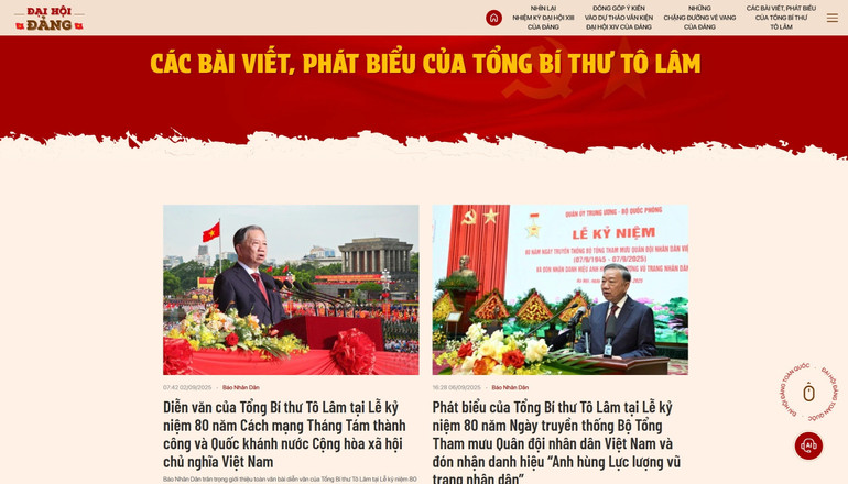 Giao diện chuyên mục "Các bài viết, phát biểu của Tổng Bí thư Tô Lâm".