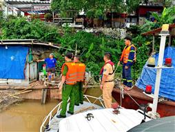 Trước diễn biến phức tạp của cơn bão số 3, Đội Cảnh sát đường thủy số 2 phối hợp với Phòng Cảnh sát PCCC và CHCN, UBND, Công an phường Hồng Hà tổ chức đoàn công tác liên ngành kiểm tra, khảo sát thực tế tuyến sông Hồng, đoạn từ cầu Vĩnh Tuy đến cầu Nhật Tân.