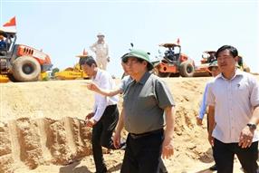 Trong chuyến làm việc, kiểm tra các công trình tại Quảng Ngãi, Gia Lai ngày 1/3, Thủ tướng Phạm Minh Chính đã đến kiểm tra công trường thi công dự án đường cất hạ cánh số 2 và các hạng mục đồng bộ khu bay Cảng hàng không Phù Cát.