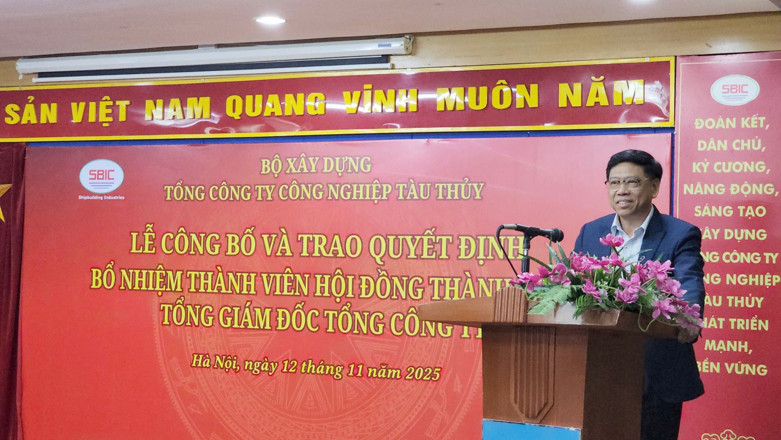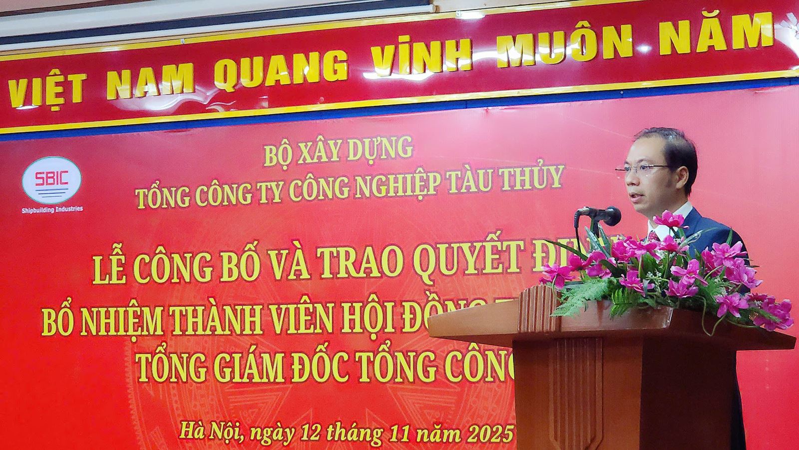 On November 12, 2025, at the headquarters of the Shipbuilding Industry Corporation, Deputy Minister of Construction Nguyen Xuan Sang presented the Decision on appointing a member of the Board of Members and General Director of the Shipbuilding Industry Corporation (SBIC) to Mr. Tran Manh Ha.