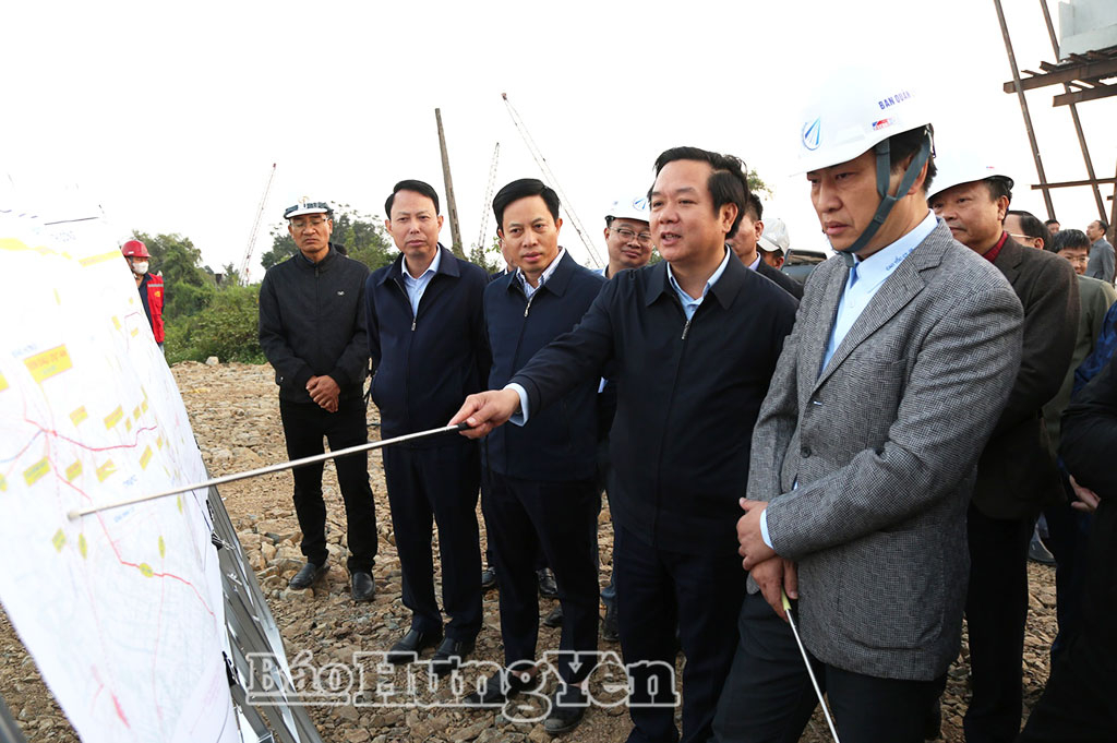 Qua nghe báo cáo và khảo sát trực tiếp tại thực địa, đồng chí Phó Bí thư Tỉnh ủy, Chủ tịch UBND tỉnh đề nghị Ban Quản lý dự án đầu tư xây dựng số 1 đôn đốc nhà thầu tập trung tối đa nhân lực, phương tiện đẩy nhanh tiến độ thi công các hạng mục thuộc dự án; bảo đảm các mốc tiến độ về thời gian, khối lượng công việc theo kế hoạch đề ra. Đối với những khó khăn, vướng mắc về giải phóng mặt bằng, Ban Quản lý dự án đầu tư xây dựng số 1 và các xã liên quan khẩn trương rà soát, phân loại các khó khăn, vướng mắc để có biện pháp giải quyết; đẩy nhanh phê duyệt phương án đền bù, hoàn thiện thủ tục pháp lý và triển khai khu tái định cư; tăng cường tuyên truyền, vận động, tạo sự đồng thuận của người dân trong triển khai thực hiện dự án.