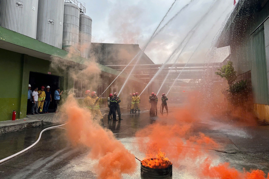Quang cảnh diễn tập tại Chi nhánh Công ty CP Bia Sài Gòn Miền Trung tại Quy Nhơn (phường Quy Nhơn Bắc)