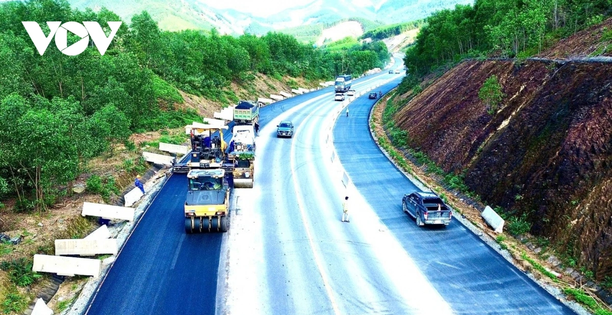 Dọc tuyến Cao tốc La Sơn - Hòa Liên kết nối thành phố Huế và Đà Nẵng, từng đoàn xe vận chuyển vật liệu ra vào liên tục. Ở các đoạn tuyến chính, công nhân tập trung thảm bê tông nhựa, lu lèn hoàn thiện mặt đường. Các kỹ sư túc trực tại hiện trường để kiểm tra bảo đảm chất lượng từng hạng mục. Không khí làm việc diễn ra nhộn nhịp.