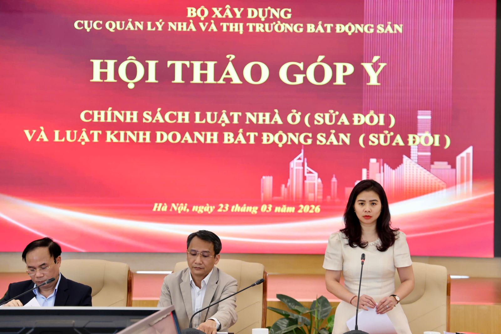 Báo cáo về việc rà soát chính sách về Luật Nhà ở tại Hội thảo, ông Vương Duy Dũng - Phó Cục trưởng Cục Quản lý nhà và thị trường bất động sản cho biết việc sửa đổi, bổ sung một số quy định của Luật Nhà ở năm 2023 nhằm tiếp tục thể chế hóa chủ trương, chính sách của Đảng, Nhà nước để hoàn thiện pháp luật về kinh tế thị trường định hướng xã hội chủ nghĩa theo hướng xây dựng môi trường pháp lý thuận lợi, thông thoáng, minh bạch, an toàn, chi phí tuân thủ thấp; tiếp tục cải thiện môi trường đầu tư, kinh doanh, đơn giản hóa thủ tục hành chính trong hoạt động đầu tư xây dựng, đáp ứng tốt hơn nữa yêu cầu tạo điều kiện thuận lợi, minh bạch, bình đẳng cho người dân và doanh nghiệp; khắc phục những hạn chế, bất cập trong thực tiễn công tác đầu tư xây dựng; bảo đảm sự đồng bộ, thống nhất của hệ thống pháp luật.