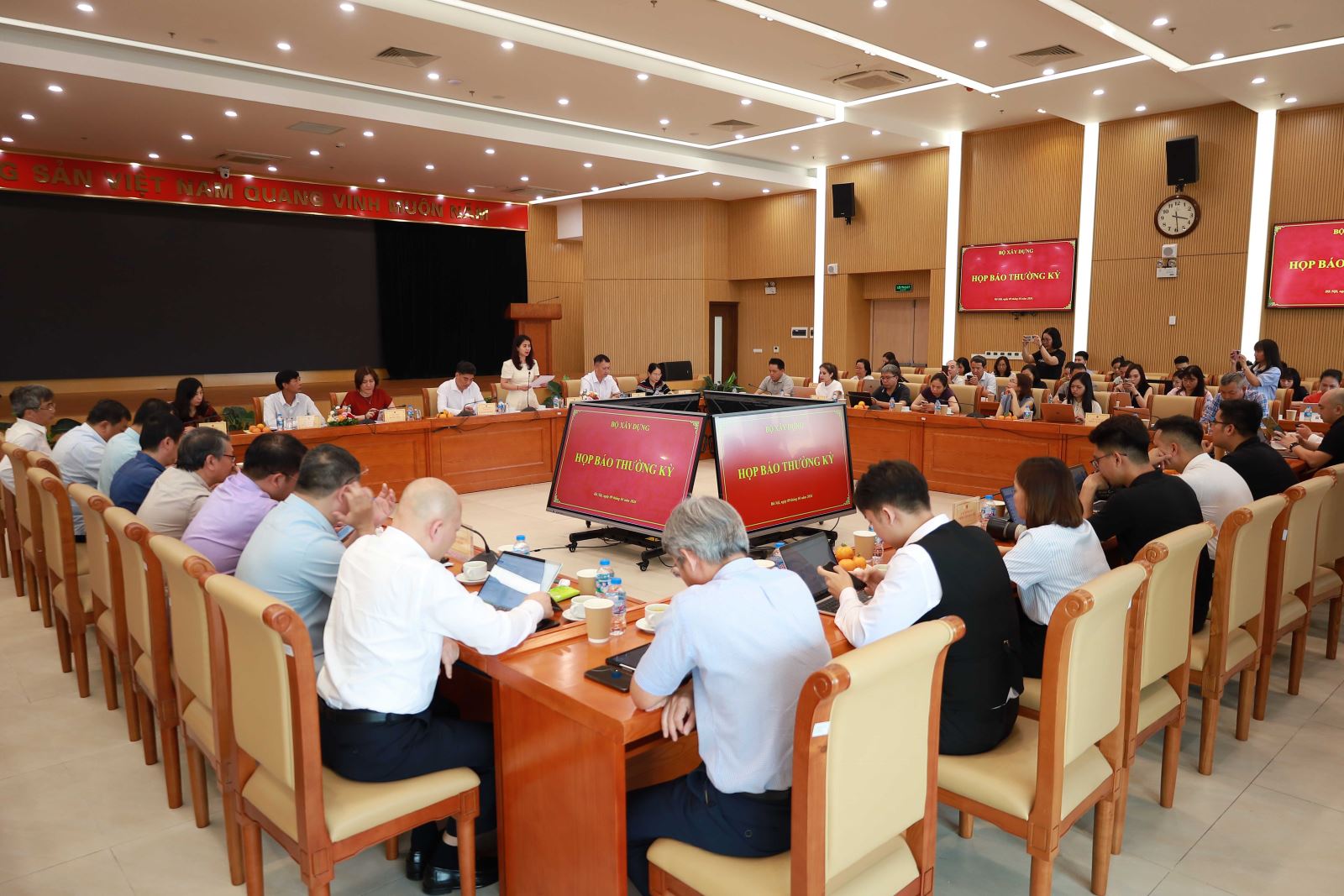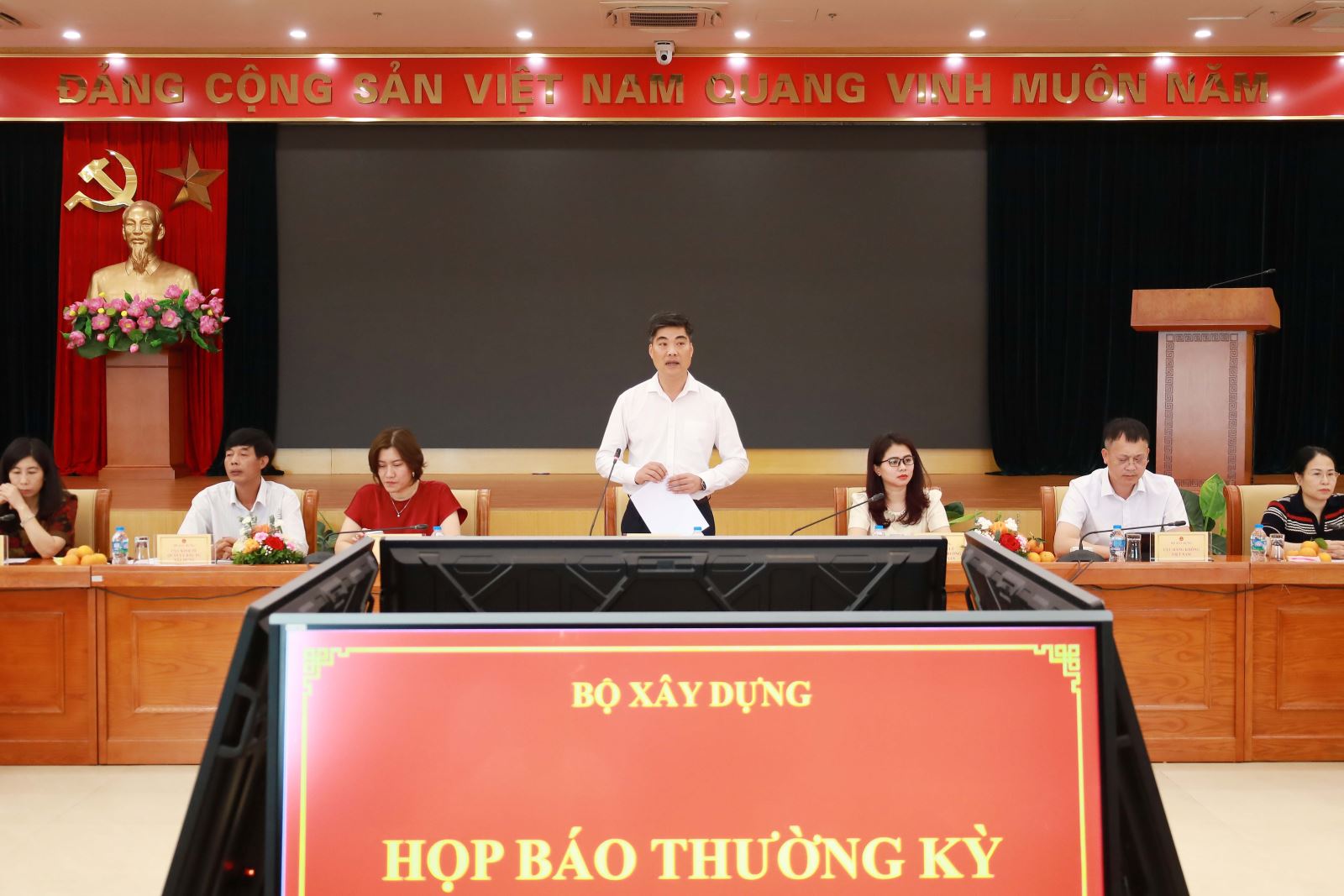 Phát biểu kết luận buổi họp báo, Chánh Văn phòng Bộ Xây dựng Nguyễn Trí Đức cảm ơn các cơ quan thông tấn, báo chí đã đồng hành và phản ánh kịp thời những chính sách mới, sự chỉ đạo điều hành của Bộ Xây dựng thời gian qua, đồng thời cho biết, trong thời gian tới Bộ Xây dựng sẽ tiếp tục tập trung hoàn thiện thể chế, đẩy mạnh cải cách thủ tục hành chính, tăng cường phân cấp, phân quyền gắn với kiểm tra, giám sát; đồng thời thúc đẩy phát triển nhà ở xã hội, hạ tầng kỹ thuật và hạ tầng giao thông theo hướng đồng bộ, hiện đại.